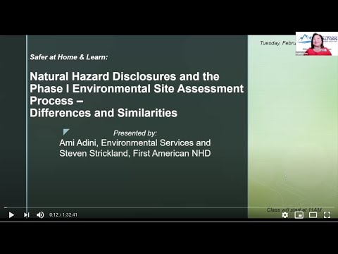 Thank you Ami Adini, Environmental Services and Steven Strickland, First American NHD, for their informative presentations on “Natural Hazard Disclosures and the Phase I Environmental Site Assessment Process - Differences and Similarities” on Tuesday, 2/16/2021.